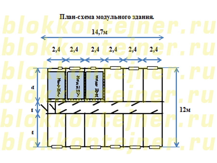состоит из 12 единиц БК размер 5,0*2,45*2,5м: